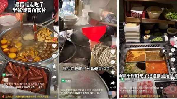 此外,一些餐飲品牌還直接和消食片品牌進行跨界合作,進行瞭門店“助消化”服務的升級。比如小龍坎等知名火鍋品牌就曾與江中牌健胃消食片聯名開啟瞭“助消化”服務的試水。