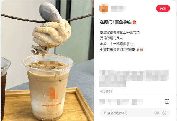 而咖啡則更加誇張,一個個奇葩的產品層出不窮,之前出瞭咸菜咖啡,之後又有皮蛋咖啡,感覺自己已經不是在喝咖啡瞭,而是喝的是概念的東西,啥都可以跟咖啡做搭配。這幾天在廈門又出來瞭一種叫章魚拿鐵的,這你敢喝,在下也是佩服的五體投地。