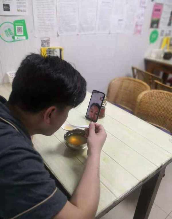 每個萬傢燈火的八九點,小夥子總來吃面。打拼瞭一天,顯得疲憊。然後打開手機,眼睛就充滿瞭光。他和女朋友視頻聊天嘛,一直聊一直聊。說下個月,兩人就準備結婚瞭。