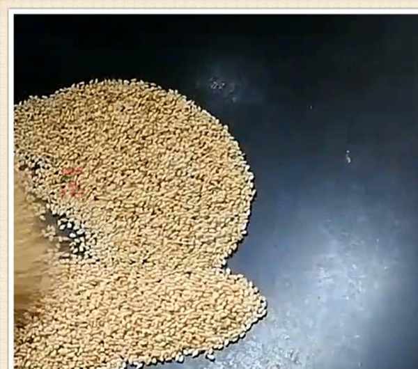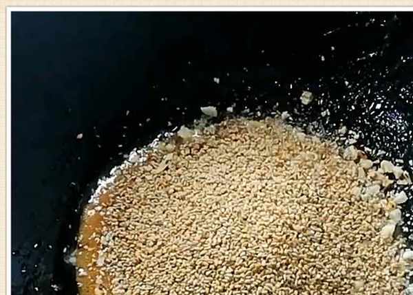 接下來再把白芝麻150克倒入鍋中炒熟,然後蹲出來晾涼備用,最後再準備150克的普通面粉倒入鍋中,開小火炒至面粉同樣微微發黃就可以盛出來瞭。