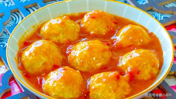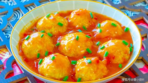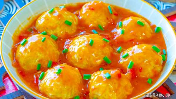12、這時候冬瓜丸子也蒸好瞭,取出來後直接淋上熬好的西紅柿醬。