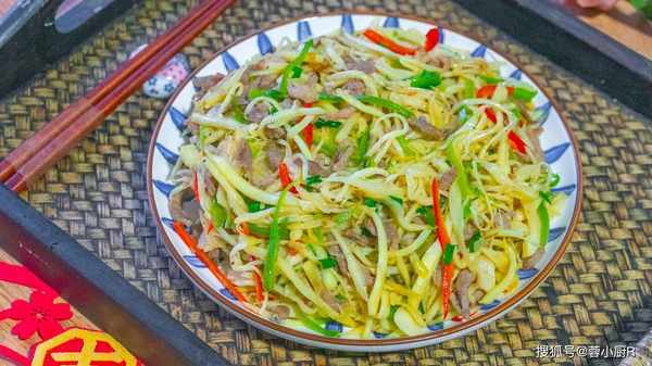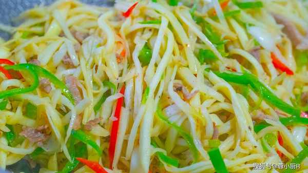4、接著再準備一塊瘦肉,洗凈後切成條 ,裝入碗裡後加少許鹽、胡椒粉、料酒、生抽、淀粉,抓拌均勻後先醃制10分鐘,可以更好地入味兒,而且炒出來的肉絲也會更嫩。