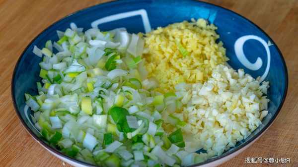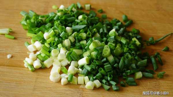 4、然後把切好的蔥花加進去,再加1勺鹽、2勺白糖、2勺生抽、1勺香醋、1勺香油,攪拌均勻後備用;