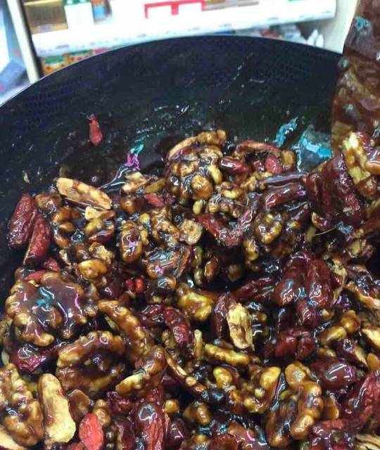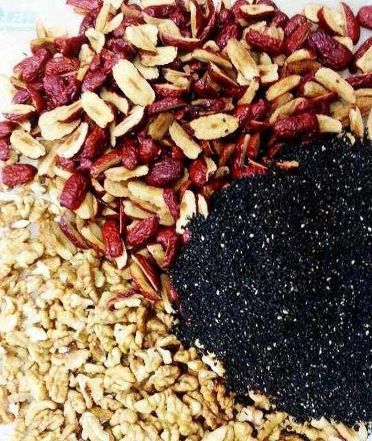 3.核桃去殼,紅棗去核,芝麻炒香。