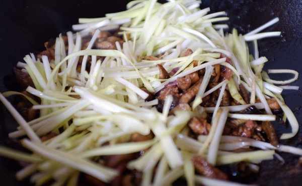1、黃鱔去除內臟,切掉頭,洗幹凈後切成細絲。韭黃摘洗幹凈,切成長段,生薑切絲。洋蔥去皮切絲。起鍋燒油,放入薑絲爆香,倒入鱔絲快速翻炒一會兒。
