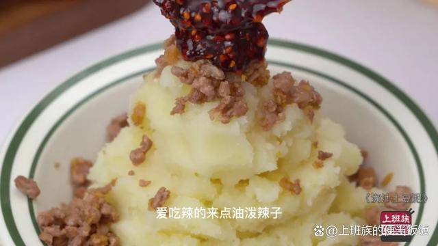 土豆泥打底,舀上幹肉醬,愛吃辣的來點油潑辣子。