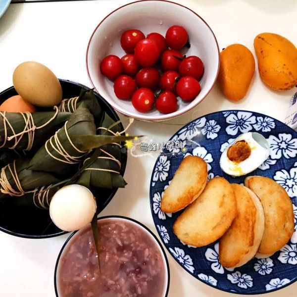 七:煎饅頭幹+粽子+煮蛋+紅豆粥