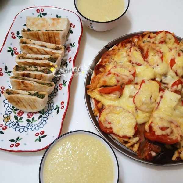 五:披薩+肉餅+小米粥