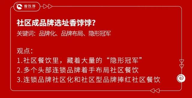 洞察社區消費的特征和習慣,是佈局社區餐飲的關鍵。跟隨社區餐飲的生活邏輯,餐飲界(canyinj.com)發現瞭幾個做社區餐飲的隱藏“秘訣”。