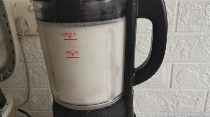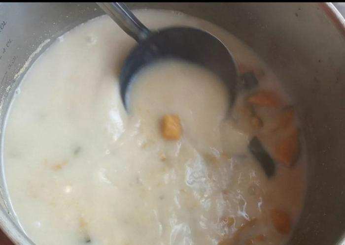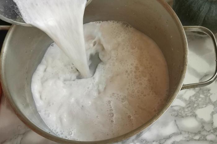 第四步:把花生汁倒入到鍋裏。