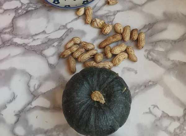 所用資料:小南瓜1個,鮮花生少許,鹽少許。