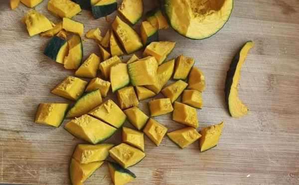 第二步:貝貝南瓜洗淨去籽,切成小塊,它很硬切的時候注意別切到手。