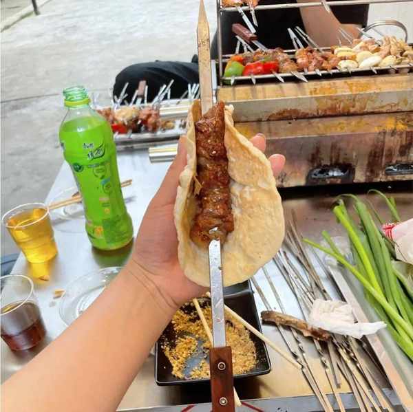 小餅將肉串油脂吸盡,既能增餅之香氣又能解肉之油膩,有的店還會準備花生碎或者芝麻鹽,吃起來那叫一個香。