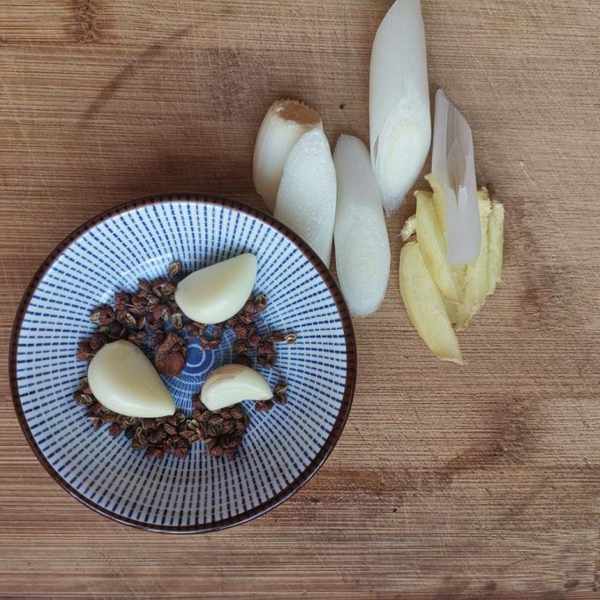 第二步:葱,薑,花椒,八角,大蒜全部準備好。