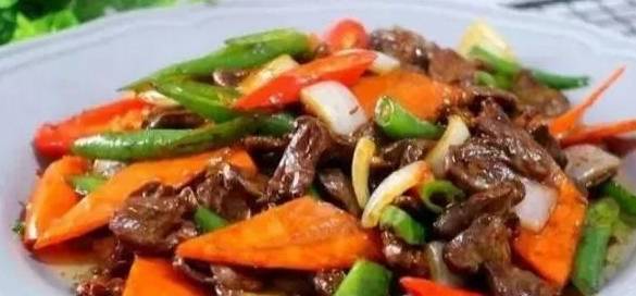 3.將淹好的牛肉倒入鍋中快速翻炒,此時要用大火。