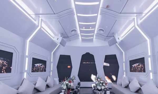 未來感設計的星聚會KTV,走的是大氣簡約的裝修風格。