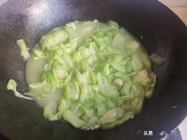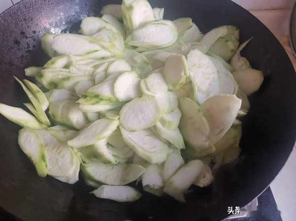 第八步:絲瓜炒不黑,其實是與絲瓜的品種有關係,這樣的帶棱絲瓜怎麼炒也不會發黑,味道還會微甜,很好吃,喜歡就試試吧~