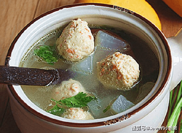 鍋內加水,煮開後放入冬瓜,煮一分鐘,再轉小火,擠出丸子放進鍋內,小火煮到丸子全部浮起來。
