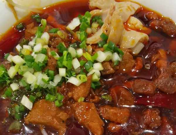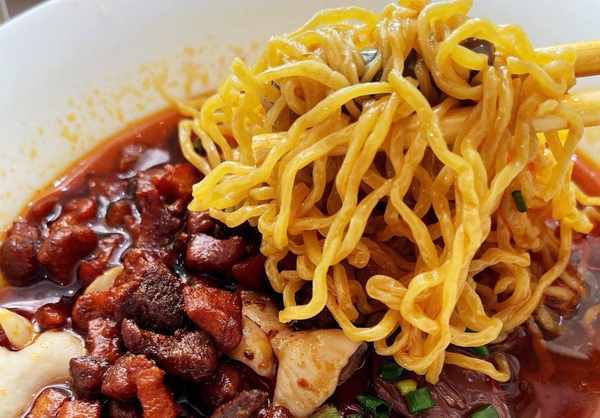 腸旺面是貴州省貴陽市的一道特色小吃,它以色、香、味“三絕”而著稱,在貴陽的街頭巷尾均能找到它的身影。到過貴陽的小夥伴不難發現,貴陽人有一個習慣就是早上多數情況下是不在傢吃早餐的,都喜歡在外面的早餐店或早餐攤吃,這也使得貴陽各種早餐尤為興盛。其中最受歡迎的早餐美食當屬這腸旺面,多年以來一直占據著貴陽早餐美食的榜首,在貴陽還流傳著這麼一句話“日食腸旺兩大碗,不辭常作貴陽客。”可見腸旺面在貴陽人心中的地位。