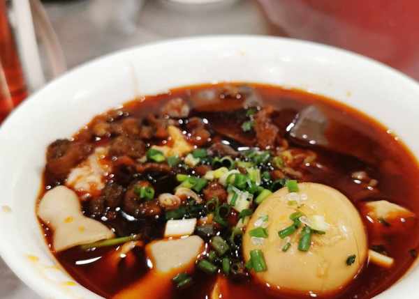 這傢店雖名氣上不如羅、蔣兩傢,但在味道上絕對有過之而無不及,也是不少貴陽人公認味道不錯的一傢,也算是小有名氣。這傢店就位於貴陽九中大門口處,店面不大,環境還算整潔,店內右側是操作間,兩位小姐姐不停地在忙碌著,左邊是一排排坐滿顧客的桌椅。他傢腸旺面的價格是12元一碗,幾年前是6元一碗,隨著物價上漲一路飆升至12元,這個價格在貴陽來說不算便宜,隻能說中規中矩,畢竟現在大多旺腸店沒有低於12元價格的。