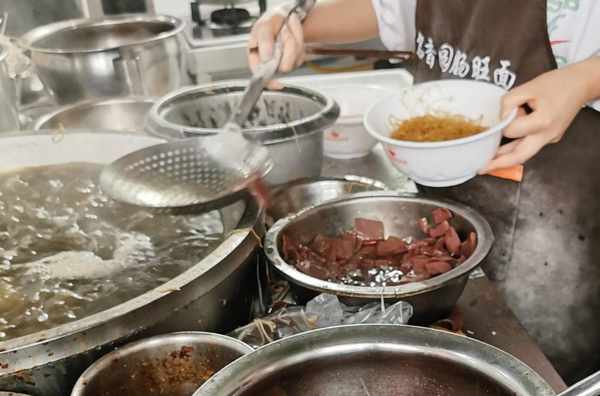 腸子、旺子也是當天現做,豬血也是每天現接保證新鮮,有生的也有提前燙好的,顧客可根據自己喜好選擇,大腸處理得很幹凈,吃起來沒有腥味,味道制作的也恰到好處。用新鮮五花肉熬制出的軟哨,大塊肥油被榨幹之後制作而成的脆哨,尤其是脆哨吃起來香、咸、脆、爽,可以選擇脆、軟哨面,也可在腸旺面中單獨加,每份9元。