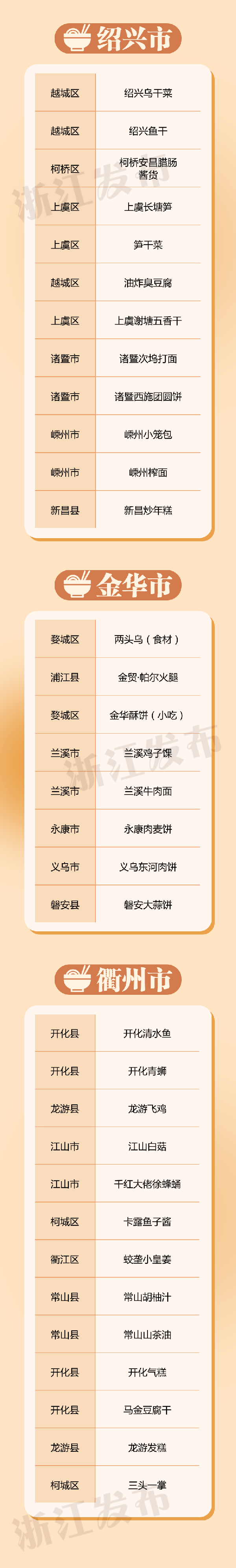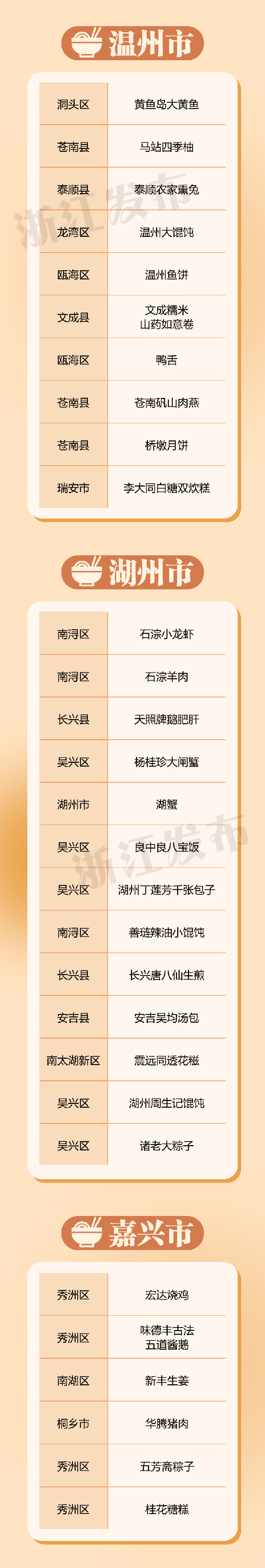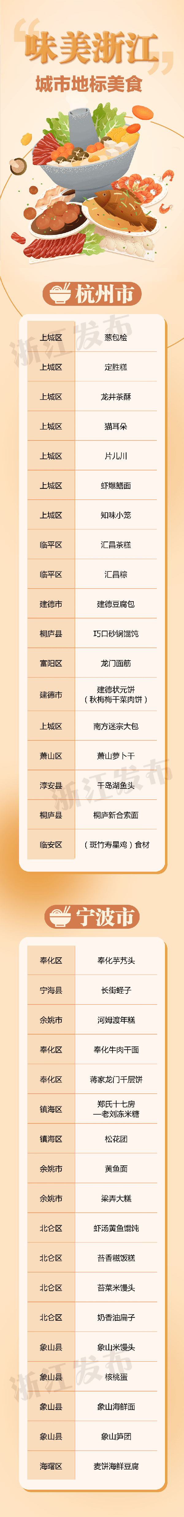 啟動儀式現場發佈瞭 “味美浙江”城市地標美食榜單,看看有沒有你記憶中最有傢鄉味的那道美食↓↓