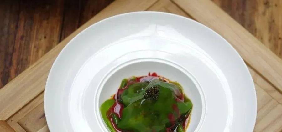 1、將八爪魚仔治凈,低溫慢煮至熟,加辣椒面,淋熱油後碼盤,鋪上菠菜涼皮,淋南乳汁、豉油汁,點綴魚子醬即可。