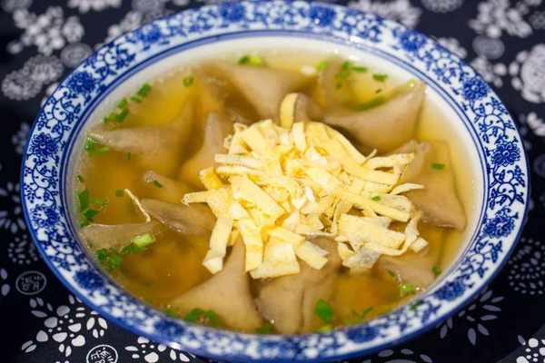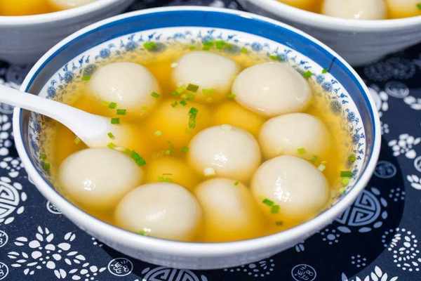 東陽湯圓餡料,一般采用豆腐和豬肉配上脂油殼末等佐料,較其他甜湯圓更不易膩口。燒制時將湯圓直接下到已燒開水的鍋中,稍加攪拌,以防粘鍋,待湯圓全部浮起,取一大瓷碗倒入醬油,撒上蔥花,加點豬油,再加適量熱水做成湯,然後撈起湯圓放入湯中,一碗香噴噴的東陽湯圓大功告成。