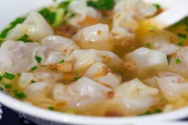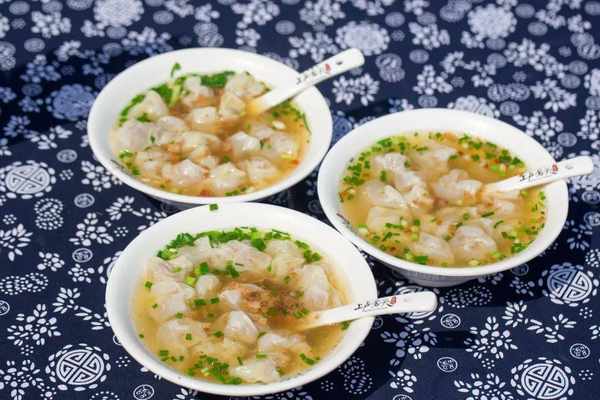 餛飩下水,烈火旺燒,浮起鍋蓋,撈出餛飩,盛入放好配料的碗裡,下鍋才幾分鐘,一碗熱氣騰騰的餛飩就端到瞭你的面前,隻見上面浮著零星蔥花。坐下來一吃,輕輕咬去,有汁兒流出,滿嘴生香。