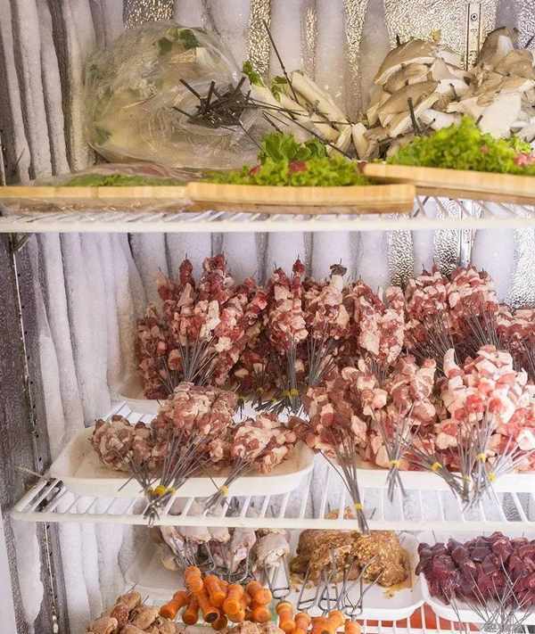 沒有鰻魚就點別的嘗嘗,點菜區就在,進來大門口的冰櫃裡!一看這傢的菜品還有點意思,“烤羊蹄”、“烤鵪鶉”、還有“小串”、“膛筋”、“外脊”、“醃制的雞脖”、這些給我來一份