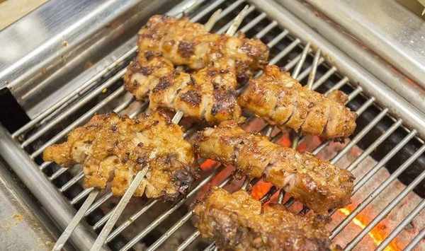 拿上一把全放在爐子上,來回翻幾次,肉串就全熟瞭