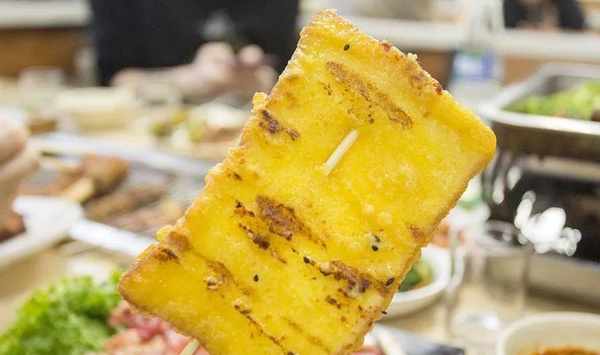 這傢的主食還有“烤面包片”,上面裹瞭一層蛋液,烤完還甜甜的
