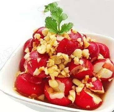 材料:櫻桃蘿卜200克,熟花生碎50克,醬油,醋,鹽,糖,辣椒油各適量