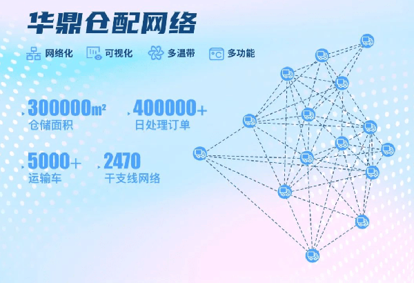 華鼎依托強大的智慧冷鏈物流體系,作為冷鏈零擔下沉市場行業領先者,依托國內領先的軟硬件技術支持,為客戶提供高效協同的一站式冷鏈服務方案。目前已形成冷鏈倉配、冷鏈到店、冷鏈零擔、凍品銷售、供應鏈金融等五大服務化產品和“一網兩平臺”的發展模式。
