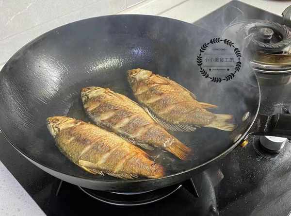 1、鯽魚處理幹凈後打上花刀,用薑片和料酒塗抹均勻,醃制片刻後放入油鍋中煎至兩面金黃。