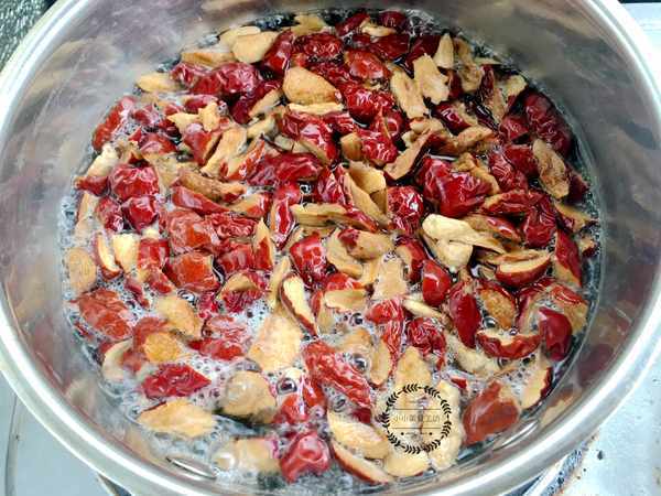 1、將紅棗和葡萄幹清洗幹凈,然後將紅棗去核剪碎,放入熱水中煮至兩三分鐘備用。