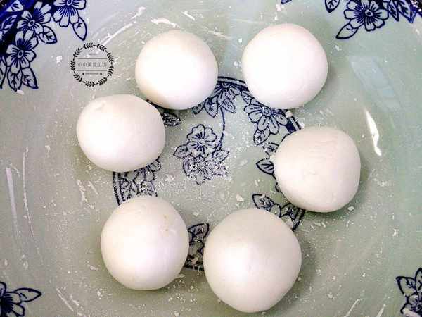 2、糯米粉中加入適量白糖,再倒入溫水揉成光滑的面團,最後分成大小均等的面劑。