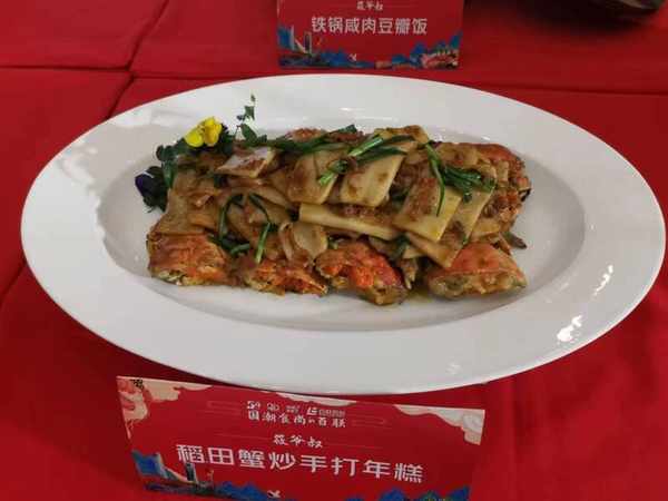 鐵鍋咸肉豆瓣飯、稻田蟹炒手打年糕、酸菜燜蠶豆餅、蛋黃溶心獅子頭……4月21日,在南京路步行街第一百貨商業中心三樓中庭的一排長桌上,擺滿瞭各色上海創新融合菜。作為第四屆“五五購物節·環球美食節”的預熱活動,國潮食尚in百聯系列活動正式啟動。