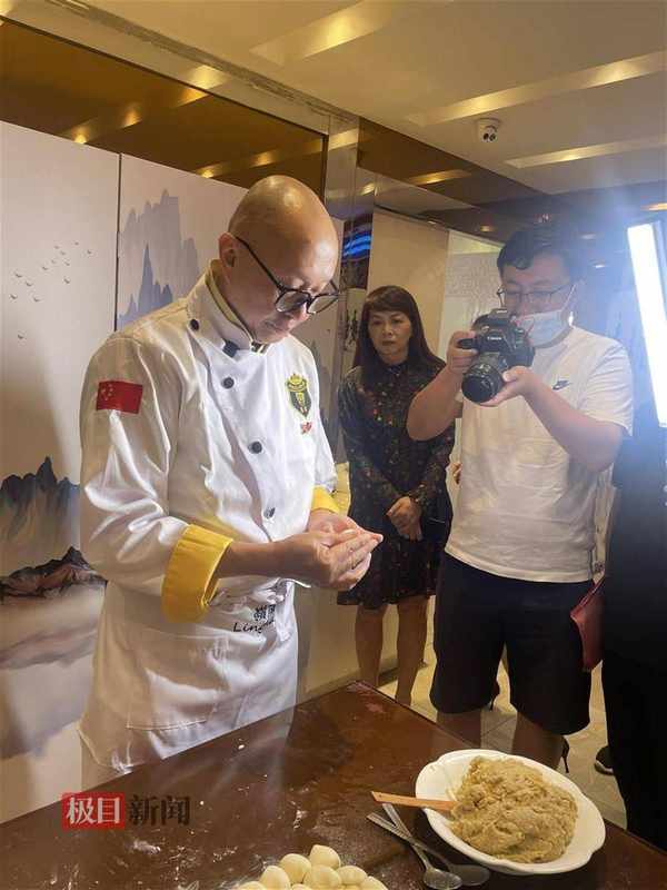 活動現場,丘衛國現場表演瞭點心制作技藝。盡管早已組建瞭自己的餐飲管理公司,多年不再親自下廚的丘衛國,在表演時依然展現出瞭紮實的制作功底。