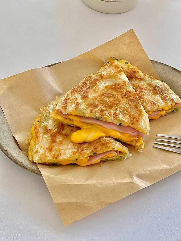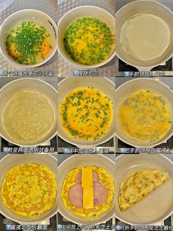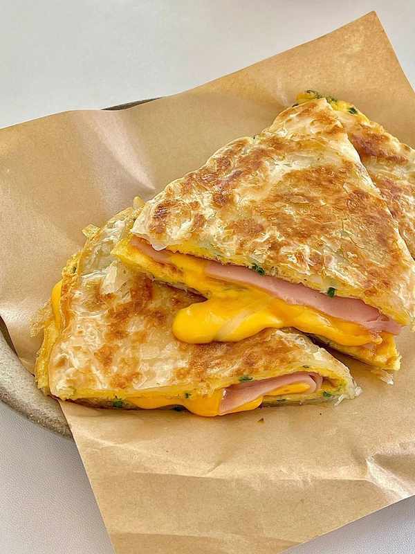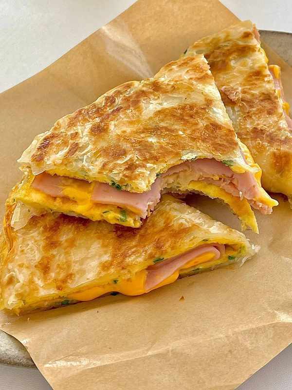 營養早餐香蔥雞蛋火腿芝士手抓餅