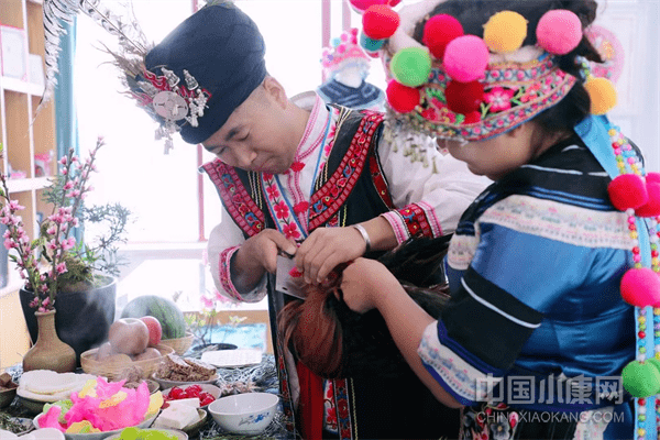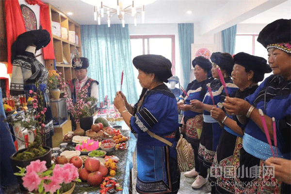 農歷二月初六是大理漾濞彝族自治縣彝族的傳統花神節,在大理漾濞石門關景區內的非物質文化遺產體驗館內,張啟誠在奶奶吉珍林的帶領下,攜繡娘們一起唱花名,拜花神,用傳統的祭拜禮儀表達對花神的敬仰和文化傳承的誠心。