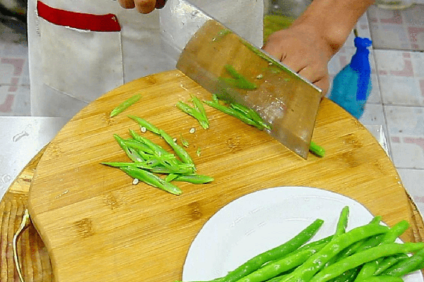 1.四季豆一把,掐去兩頭撕去兩側的豆筋,清洗幹凈。若是時間充足的話,盡可能在水裡多泡一會,去除農藥殘留。