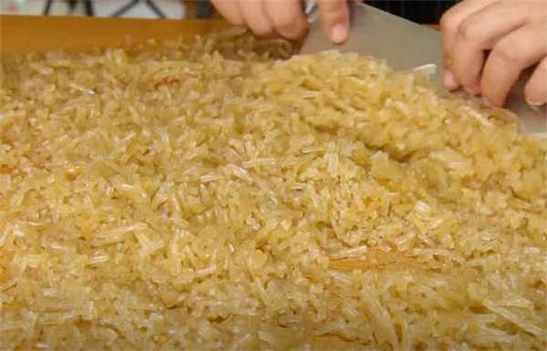 2.現在粉條已經全部泡軟瞭,咱們把它撈出來,用刀切碎一些。