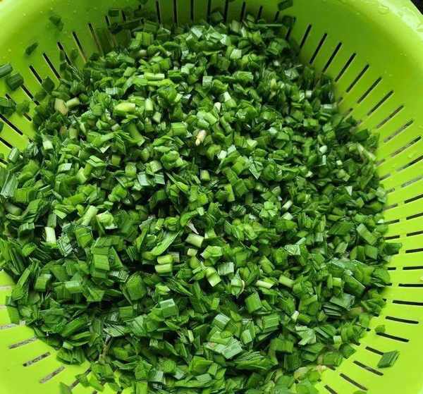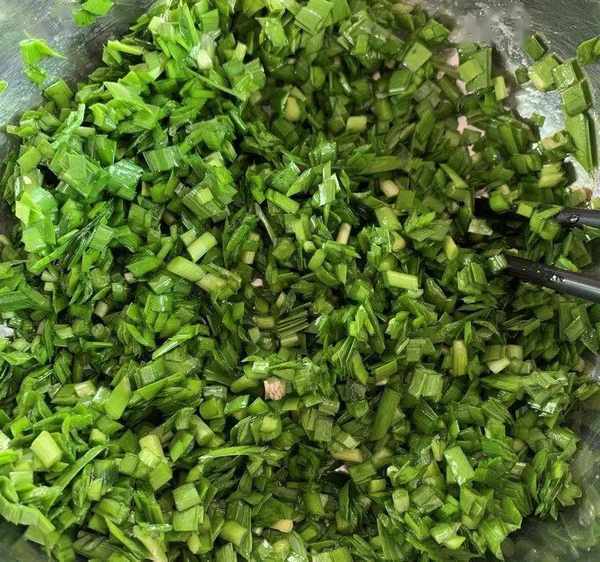 1、韭菜提前洗幹凈,晾幹水分,切碎