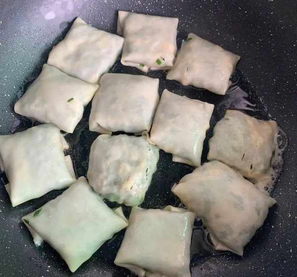 9、包好的小可愛,可以一次多做點放冰箱冷凍,下次吃的時候直接拿出來煎