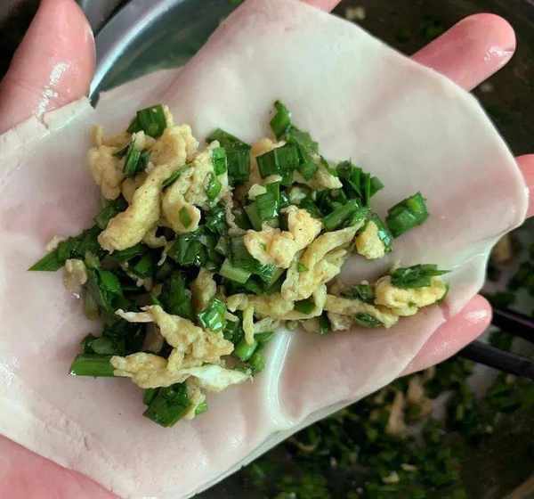 韭菜一定要晾幹水分哦!!不然後面會出水,皮容易破!