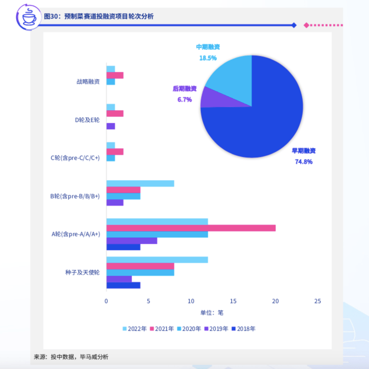 從投資輪次來看,2022年中國餐飲業投融資主要集中在種子及天使輪,交易占比超過全年的一半;與2021年同期相比,大幅增長八成。為什麼會種子及天使輪占到半數,但A輪及以上投資有所回落?