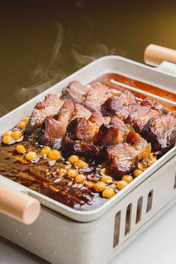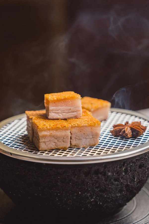 以隕石星球的造型呈現的小悅招牌炭烤燒肉,底下放上瞭加熱過的八角,用炭烤的方式把調味作用發揮到最大值,開蓋不止煙氣繚繞還有陣陣獨特香氣。