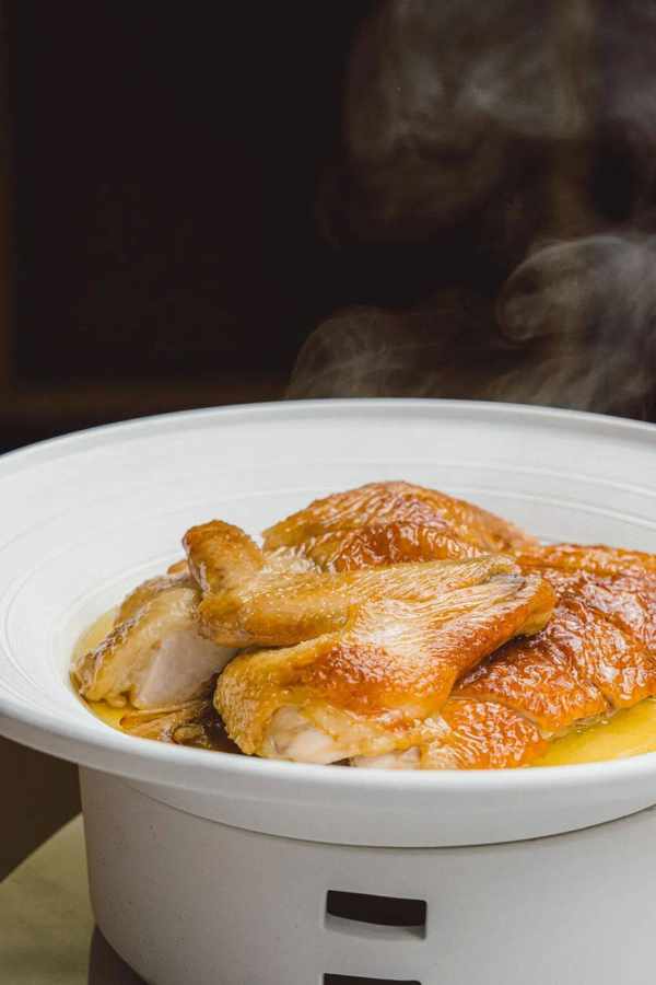 都說廣州人無雞不成宴,吃粵菜有走地雞更香!自然放養的走地雞,隻隻都是運動健兒,練就一身緊實不散,爽彈的口感;烤制過後皮脆肉滑,挑剔老廣都話冇得彈!