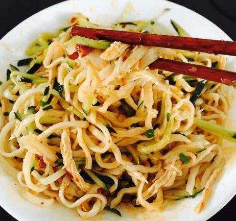 冷卻後的雞胸肉用手撕成纖維備用。鍋裡再燒開水,把豆芽放進去蒸熟,然後放面條煮熟,再放入冷白中煮至涼透。完全涼透後,盛入大碗中,倒入混合醬汁和蒜蓉水,然後加入一些雞絲,再加入其他材料如胡蘿卜和黃瓜,攪拌均勻,裝盤時,撒上一些蔥花andserve,simple大傢都知道不錯,食材很普通,最美味的夏日美食,也來試試吧。